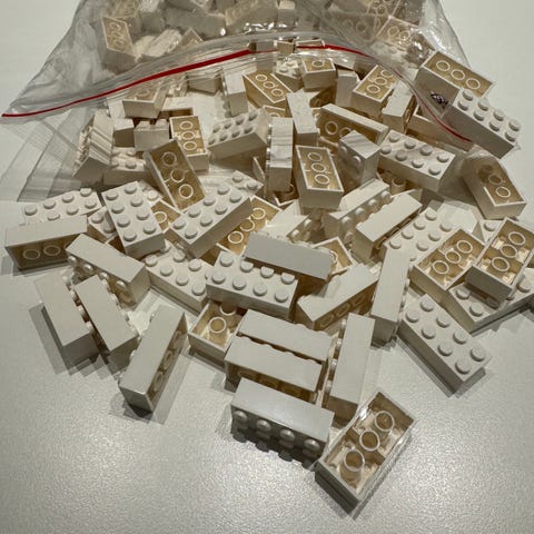 Lego, model 3001, Helt spritnye hvide Legoklodser 2x4 basic/basis klodser.