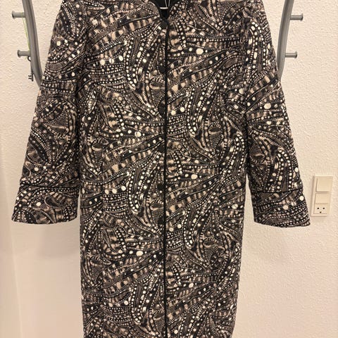 Smuk, Unik og farverig quiltet jakke fra Dea Kudibal med flot mønster i rosa, blå og hvide nuancer på mørk bund. Jakken har to store forlommer, trykknaplukning og en elegant, asiatisk-inspireret krave. Let foret og perfekt til overgangsperioder.