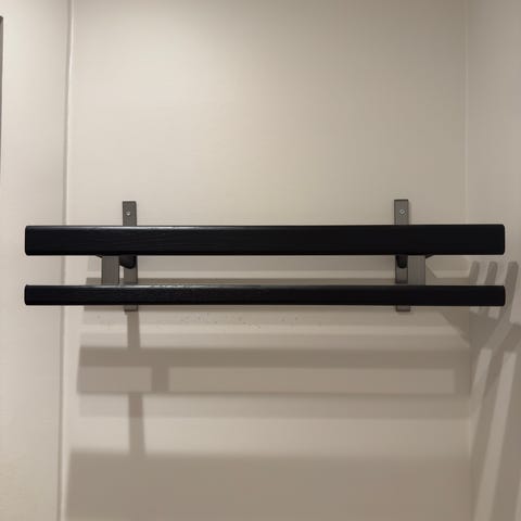 Sorte vanger med aluminiumsfarvede stænger og knager.