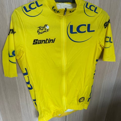 Cykeltøj, Cykeltrøje, Santini, str. Xl, Den gule førertrøje. Tour de France. Som ny brugt én gang til at heppe i, da touren kørte gennem Danmark.