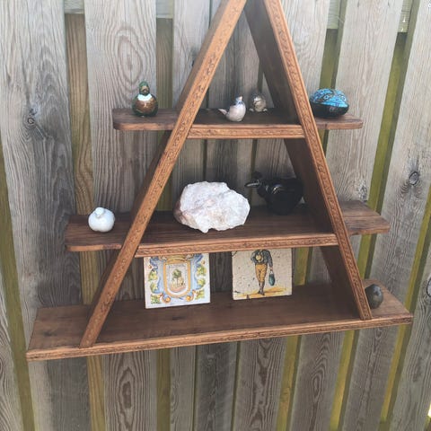 Der er her tale om en retro amagerhylde / hylde i fyrretræ. Har patina.