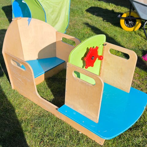 Den store blå/hvide siger tut-tut når der trykkes på den