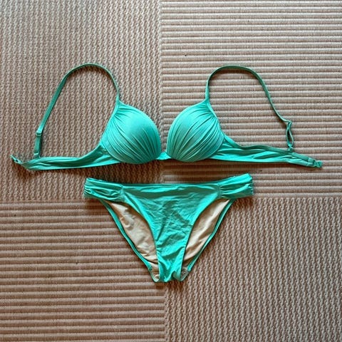 Femilet sort og pinkmønstret bikini str 40. Bhen str 70 F , tyndt for og bøjler