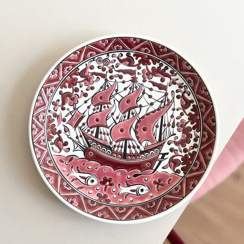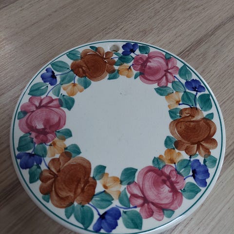 Smuk håndmalet platte til væggen i fajance fra Polen - den har et lille bitte skår på bagsiden (se billede)