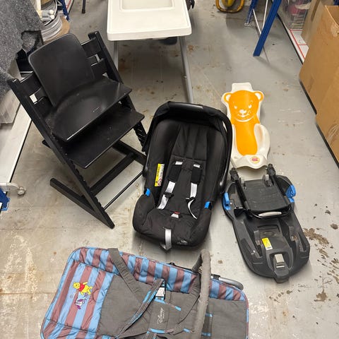 Vi har en baby start pakke fra britax rømer som er købt fra nyt i 2023 da vi ventede vores søn som nu er 3 år, den lille stol ser ud som om den aldrig har været brugt, den store stol har dog et par brugsspor men er kun brugt til vores søn.