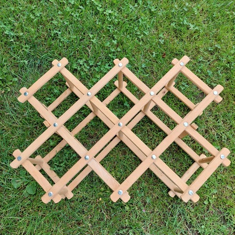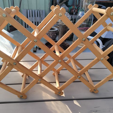 Retro Vinreol saks model - i træ med plads til 10 saft- eller vinflasker, den ideelle løsning til opbevaring af din vinsamling./Flasker
