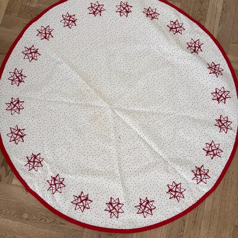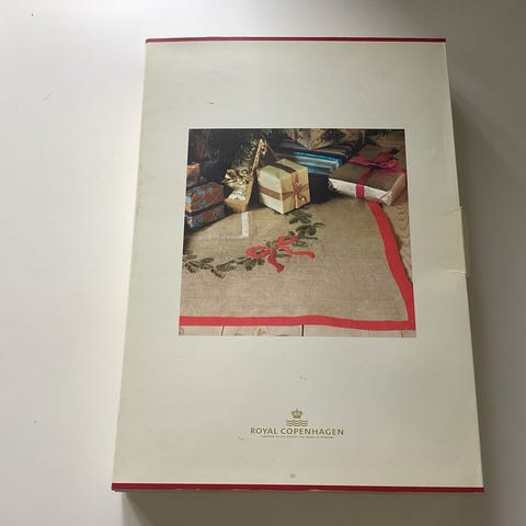 Royal copenhagen juletræstæppe, Fint juletræstæppe med mønster af fine flettede hjerter. En smule brugsspor se billeder. Tænker det kan vaskes af med en klud.