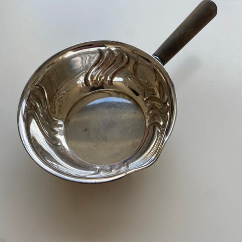 G.A.B. Just Andersen sølvplet kasserolle med låg. 1940'erne. Stemplet Der er en lille bugle I bunden af kasserollen.