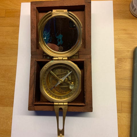 Fint kompas - bør efterfyldes - dia. 25 cm - dybde 16 cm - med mulighed for belysning i kompas.