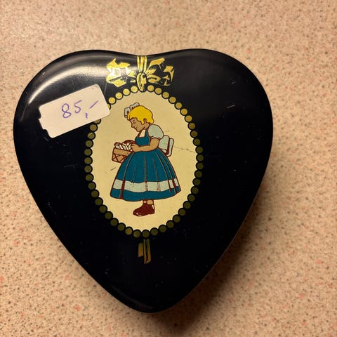 Hjerteformet dåse + kaffe mål med Irma pigen