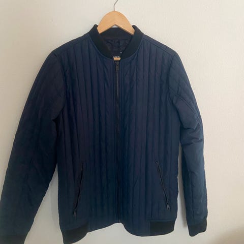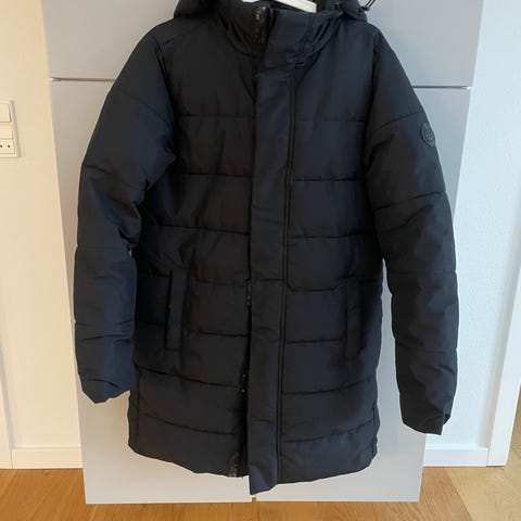 Vatteret jakke fra Mono i str 16 år (176). Koksgrå med sorte kanter. Brugt, men stadig pæn og velholdt. Trænger til en ny imprægnering.