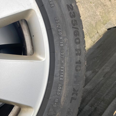 Ikke meget dæk tilbage. 1-2 mm til minimum mærkerne. Michelin helårsdak.