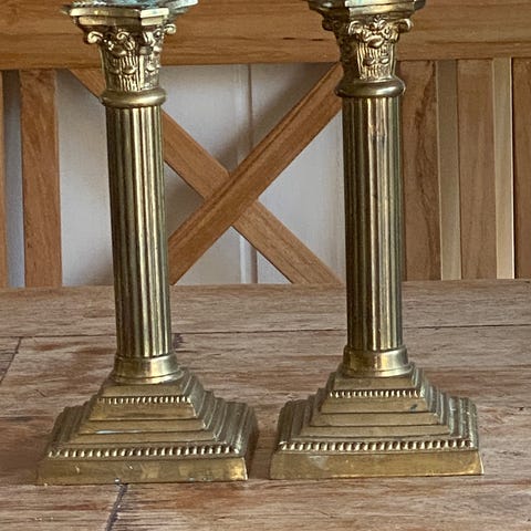 Så flotte med snoninger. Meget velholdte. Måler 30 cm.