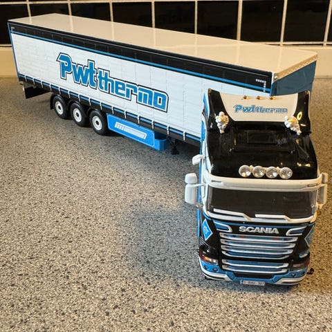 Var tænkt til at skulle stå i en montre, som jeg ikke har fået produceret, men jeg har ikke plads til vogntoget. Både Peterbilt og tank'eren har ligget i deres kasser uden at være blevet "udstillet". Afhændes derfor.