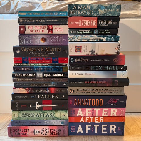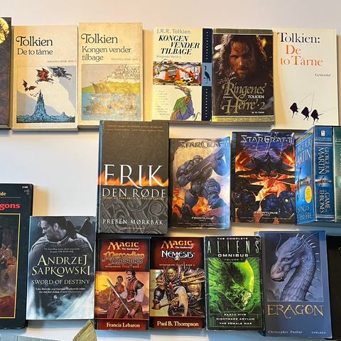 Forskellige fantasy bøger på dansk.