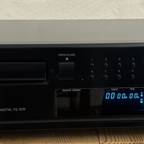 Har denne her rimelige fine cd-afspiller til salg den spiller rigtigt godt jeg har gået den igennem for fejl og skiftet remmen til cdskuffen og så har jeg renset læser på den og ellers ikke lavet noget på den den er I rimelig god stand men har da lidt brugs spor se billeder den er ikke med fjernbetjening
