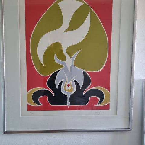 Signeret indrammet litografi, rammemål 73 x 59 cm.
