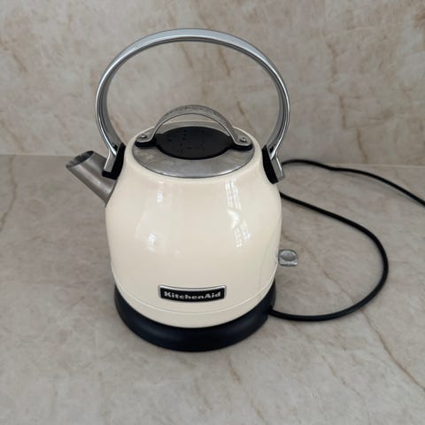 Sort elkedel fra Kenwood Kmix. Brugt og med brugsspor i form af kalkrester, ridser og afskalninger.
