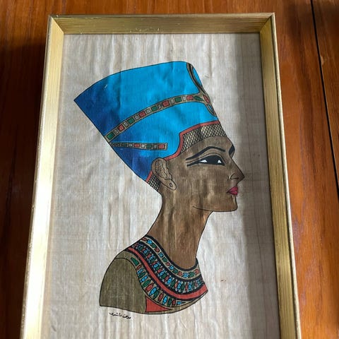 Håndmalede, egyptiske motiver på papyrus. Købt i Cairo i 1992.