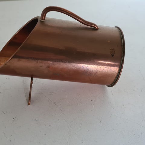 Kulspand, Kulspand i kobber med flot porcelænshåndtag. Både spanden og håndtaget er i god stand.