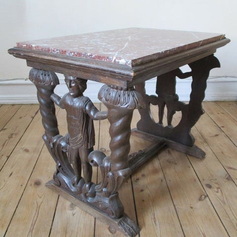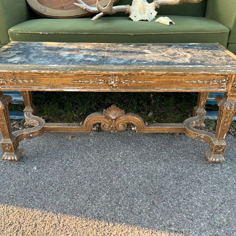 Antik Ovalt Sidebord Med Marmorplade