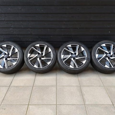 Næsten nye sommerdæk med originale Peugeot 308 alufælge.