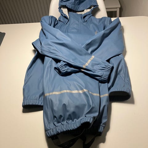 Smart LEGO® Wear regntøj i blå, bestående af en regnjakke og et par regnbukser.