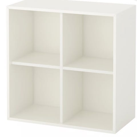 Egetræsfinerde reoler med hvid bagklædning, også udadvendt så de kan stå frit.