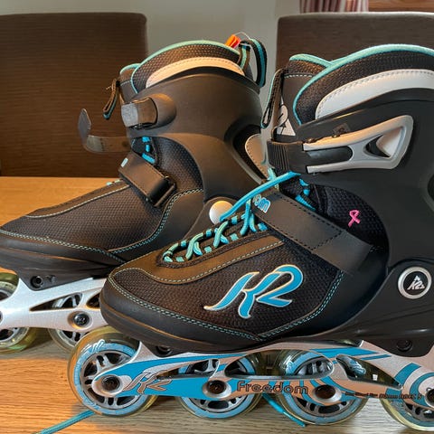 Rulleskøjter har kun været brugt 2 gange, så de er som helt nye.
