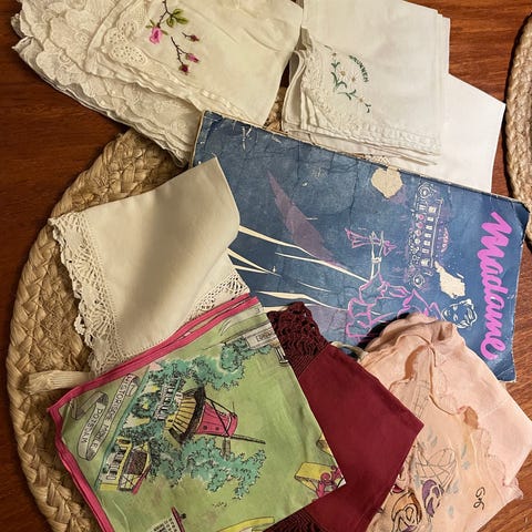 Bomuldslommetørklæder tilbage fra begyndelsen af 1960’erne. Kan tåle kogevask.