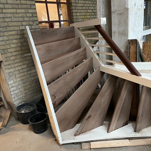 Unik trappe håndbygget i ægte massiv +40mm Burma teak importeret til dk i 1950-60 -erne.. Specielt 3mm “let” med stærkt rustfri beslag som evt kan tilpasses anden vange med anden trinhøjde..centervangen er 100x200mm stål beklædt med rustfri kappe. Trin er samlet med epoxy og “fisk”i begge ender. Gelænder og lamper kan medfølge. Mål er gulv til gulv 277 trinhøjde 21,5 trinbredde 24 cm bredde 78cm. 45 gr hældning super god at gå på. 5 meter + hjørne glas Glasgelænder med teakplantekasser medfølger.sælges kun da vi skifter til egetræ i rummet og derfor vil teak ikke passe ind.