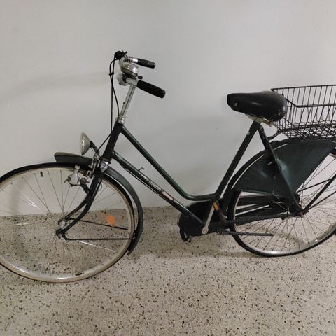 Denne cykel er af ældre dato, men praktisk taget ubrugt. Det er en solid kvalitetscykel, som står meget flot, selvom den er af ældre dato. Baghjulet skal rettes, men fungerer ellers fint.