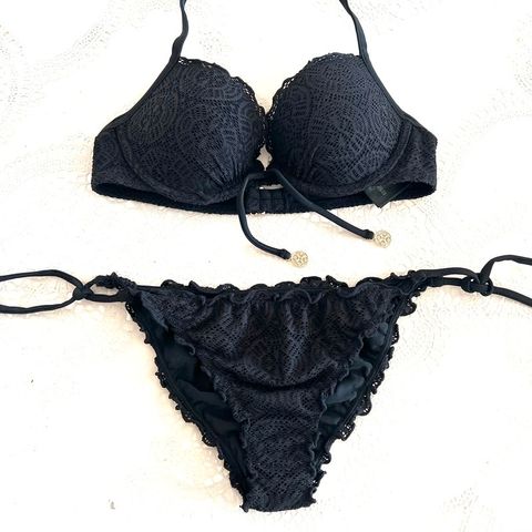 Fleur sort og hvid pushupbikini. Str XL