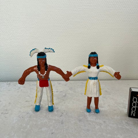 To gamle elastolinfigurer. Indianere. Store figurer. Markeret med L i bunden..