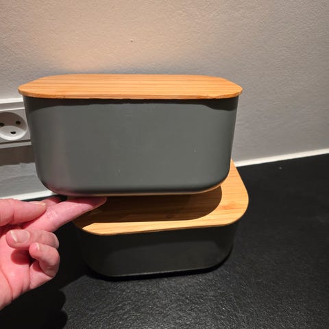 Andet, Opbevaring, Menu grå plastikbøtter med bambuslåg inkl køleelementer.