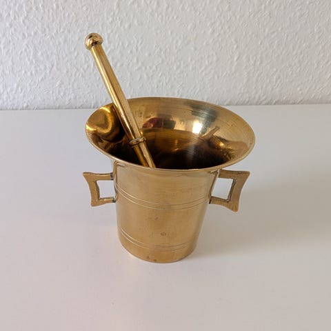 ✨ Antik messing morter med støder – massiv, 814 g – apotek / retro køkken