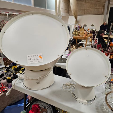 (Virker perfekt også på gulv kontakt. Er uden skruer i selve den mælkehvide skærm for lettere at udskifte pærer. Som medfølger.