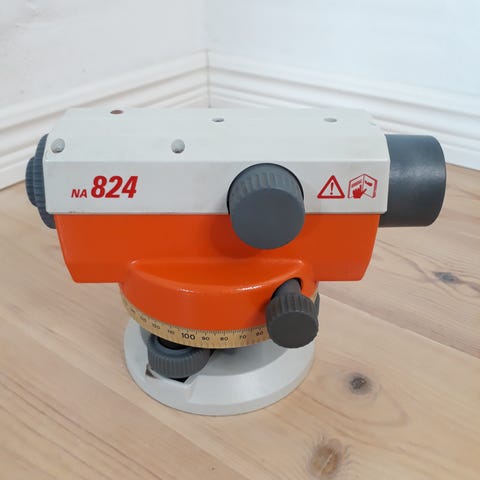 Nivelleringsapparatet er - alderen taget i betragtning - i meget flot stand med helt klar optik - transport tasken har udvendig patina efter brug i felten.