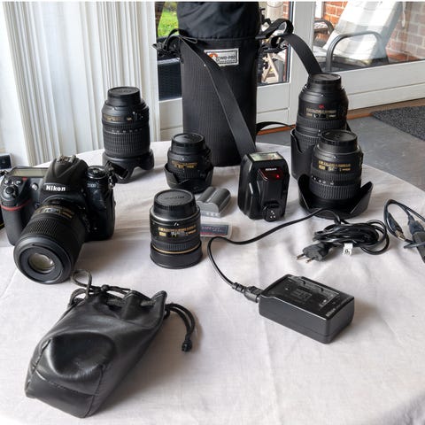 Et Aquatica sport hus til Nikon z 50 ll. En mini dome port i glas, 6” dome port i acryl, en flad port i glas, 2 stk. mellenring no. 18429 og 18463, et Aquatica lysmåler hus med Minolta lysmåler IV f, en Sea Foogs leak sensor VPS-100, et Nexus flash hus med Nikon SB 400 og Nikonos kabel, og værktøj til Aquatica huset, neopren hætter mm.