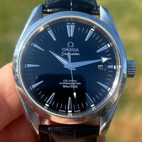 Sælger en Omega stållænke, model 1630/690 (62 omega), som passer til Aqua Terra-modeller med 21mm indvendig bredde – for eksempel Aqua Terra 150m Co‑Axial Annual Calendar 43mm, Aqua Terra 150m Co‑Axial GMT 43mm og Aqua Terra 150m Co‑Axial GMT Chronograph 43mm.