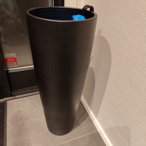 Høj sort vase fra Leonardo. Vasen er 60 cm høj og 17 cm i diameter for oven. Vasen er uden revner og fejl. Skal afhentes i Tilst- sender ikke