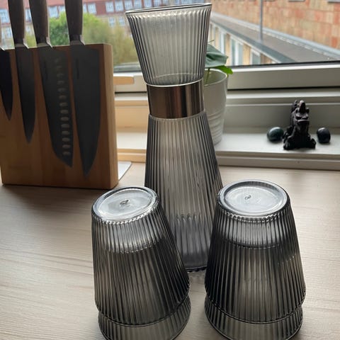 Låg til Rosendahl vandkaraffel. 40 kr.