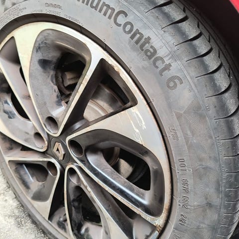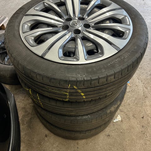 Har slidt kanstens ridser, og 2 dæk har mærker i gummiet som kan ses på billederne. De fejler intet og er blevet brugt lige til vinterhjul kom på og bil solgt.