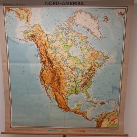 Skolekort over Asien, som måler 210 cm x 200 cm. Kortet viser geografiske træk, og er velegnet til undervisningsbrug eller som dekorativt element i hjemmet. Kortet er i super fin stand, og kan afhentes I Kolding - Vonsild.