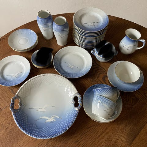 Mågestel fra Bing & Grøndahl – 21 dele med guldkant (perfekt stand)