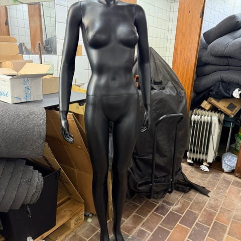 4 stk. Dame mannequin dukker i glasfiber (IKKE plast, som de billige) i meget høj kvalitet, farve i halvmat hvid og fodpladerne er runde lakeret metal.