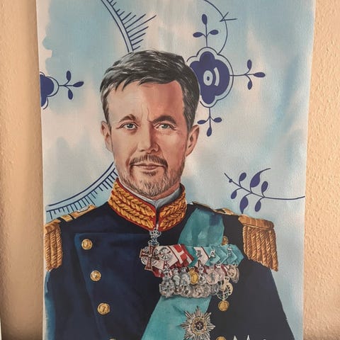 Absolut fin tyk plakat fra dagen vi får en ny konge. Hentede ned af lygtepæl. Derfor er der huller for oven og for neden. Dermed bevis på at det er på dagen❤️🇩🇰