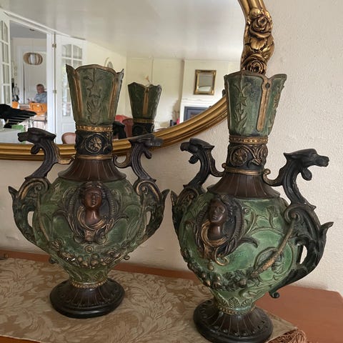 Et par Empire prydvaser i forgyldt træ. Med etiket fra Augus