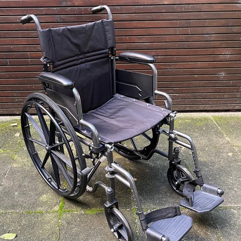 Sæde bredde og dybde er 45 x 45 cm. Fodstøtter kan indstilles i højden og kan tages af. Ryggen kan også klappes sammen ved transport