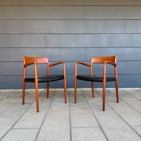 Peter Hvid og Orla Mølgaard Nielsen, armstole i teaktræ med palisander armlæn.